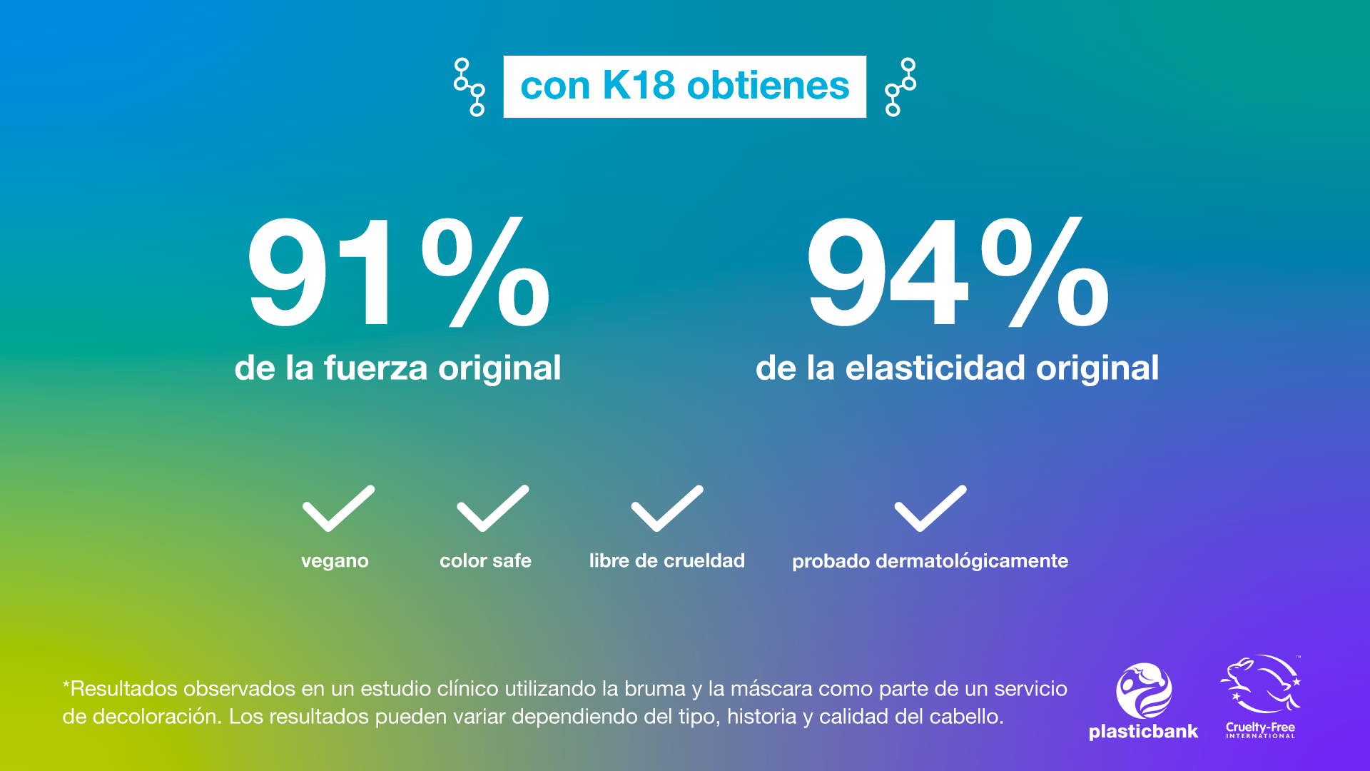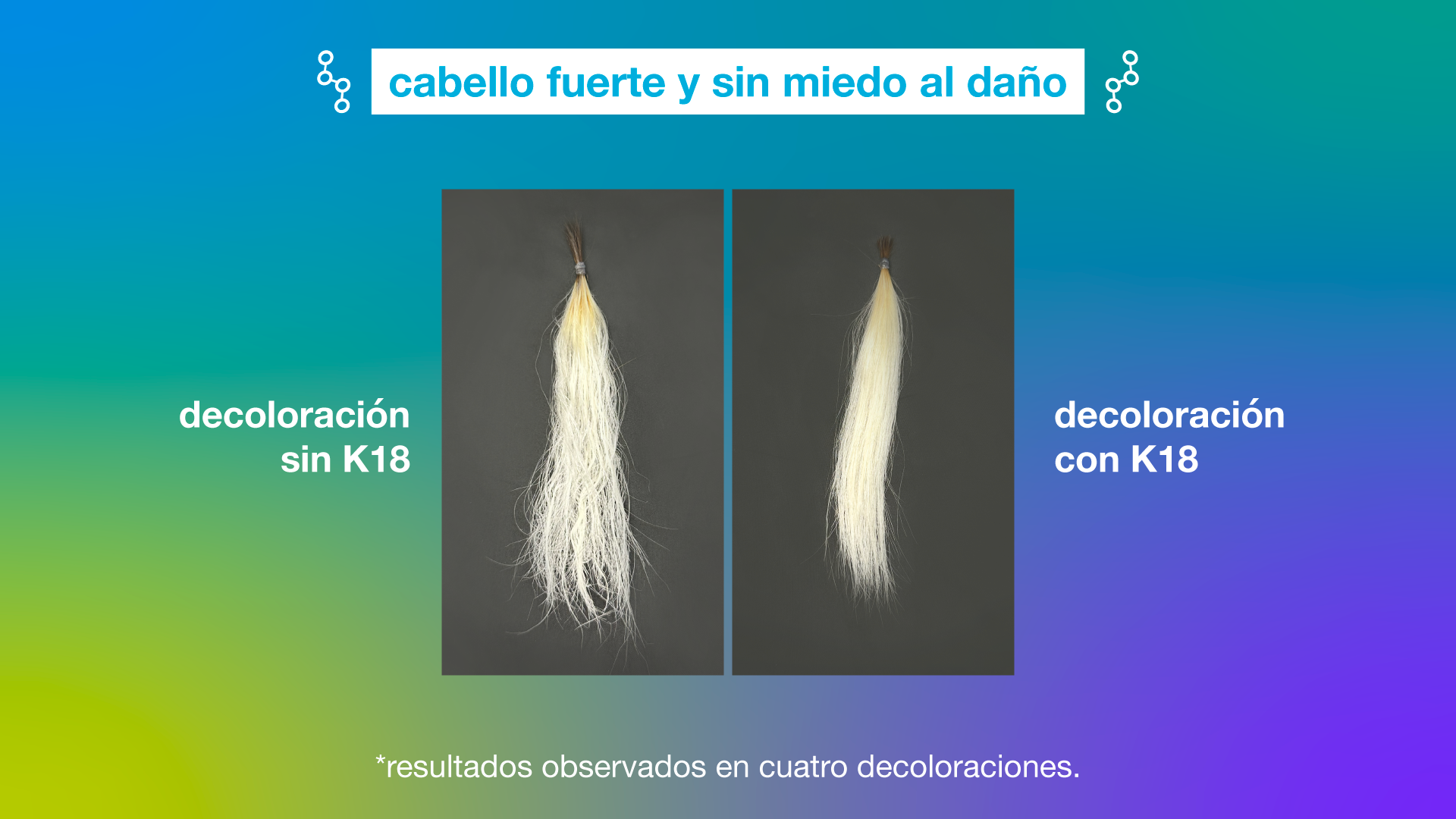 Nuestro Péptido K18™ es la revolución molecular patentada, probada clínicamente para revertir el daño del cabello – en sólo 4 minutos.